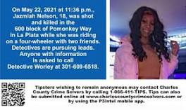 | Teen's 2021 Murder in La Plata Remains Unsolved - The Southern Maryland Chronicle Charles County Crime Solvers is offering a cash reward of up to $10,000 for information that leads to the arrest and indictment of the suspect.